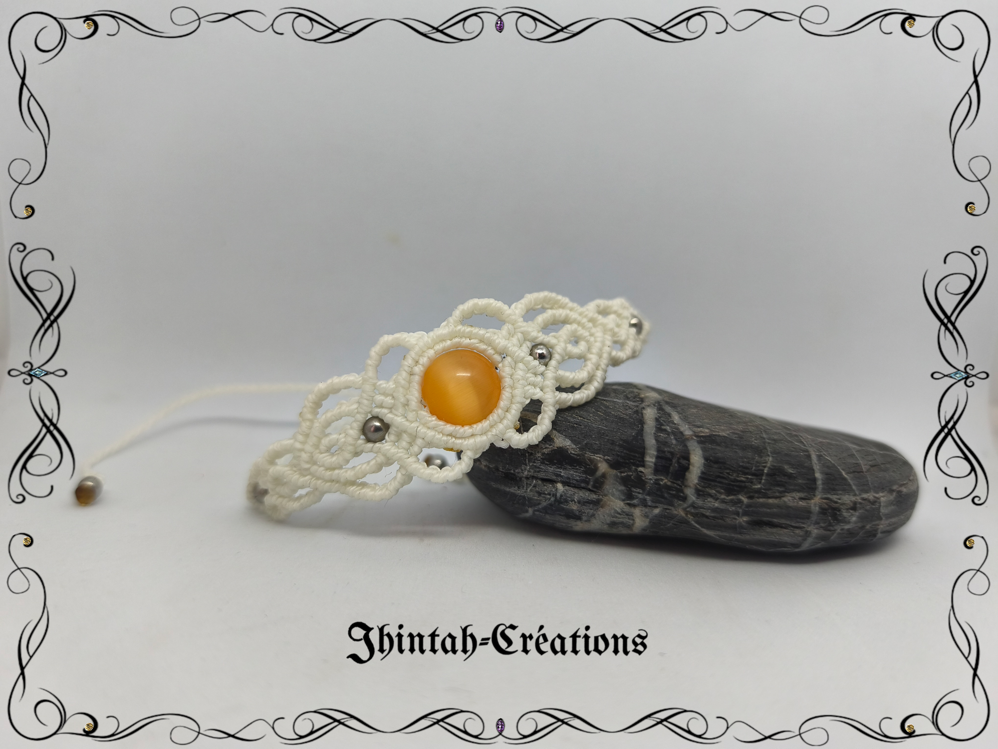 Le bracelet Nindë est réalisé en macramé agrémenté de perles.